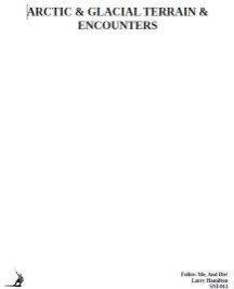 Arctic & Glacial Terrain & Encounters is an overview of arctic¸ antarctic¸ and glacial tarrain. This can be used on the fly at the table or as part of adventure preparation.